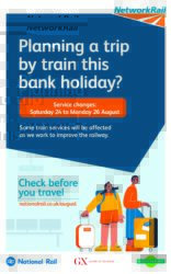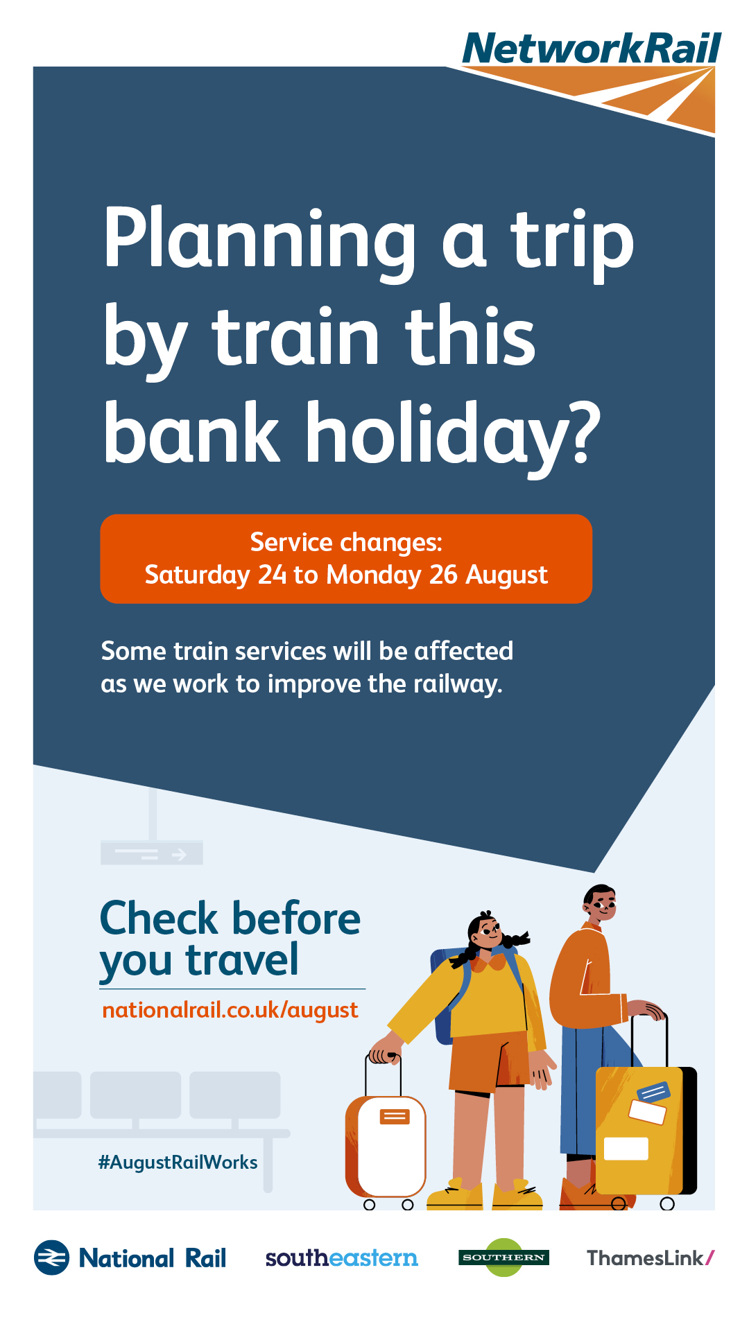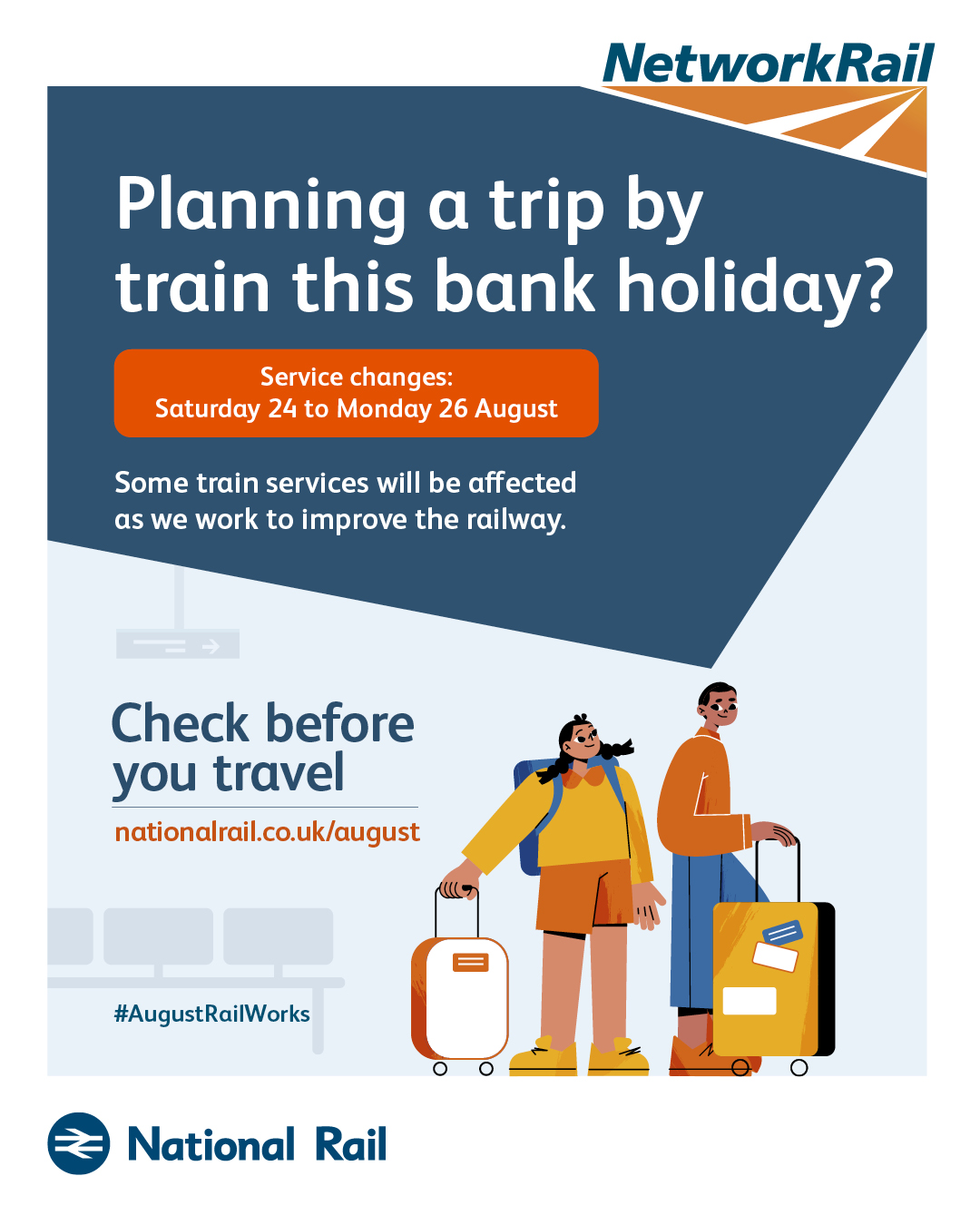 The aim of this campaign is to raise awareness of planned rail engineering works over the August bank holiday period, and encourage leisure and business passengers to check if their train journey is affected before they travel. After extensive passenger and stakeholder research, we have developed a new creative route which is an evolution of the previous stick person creative design.
