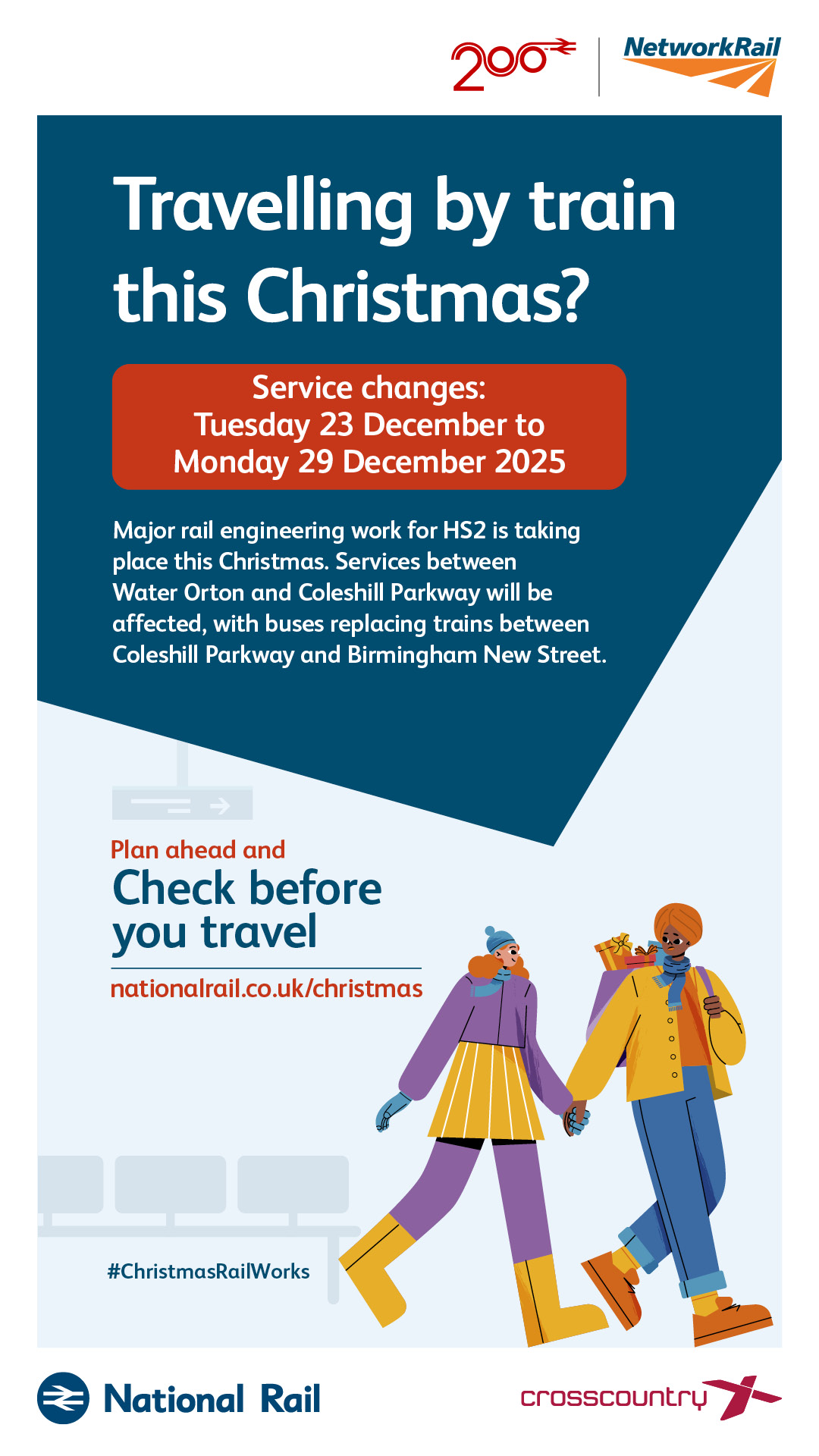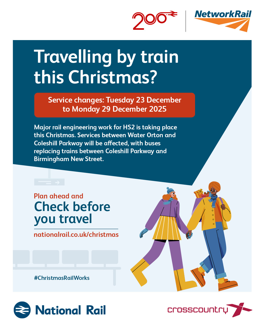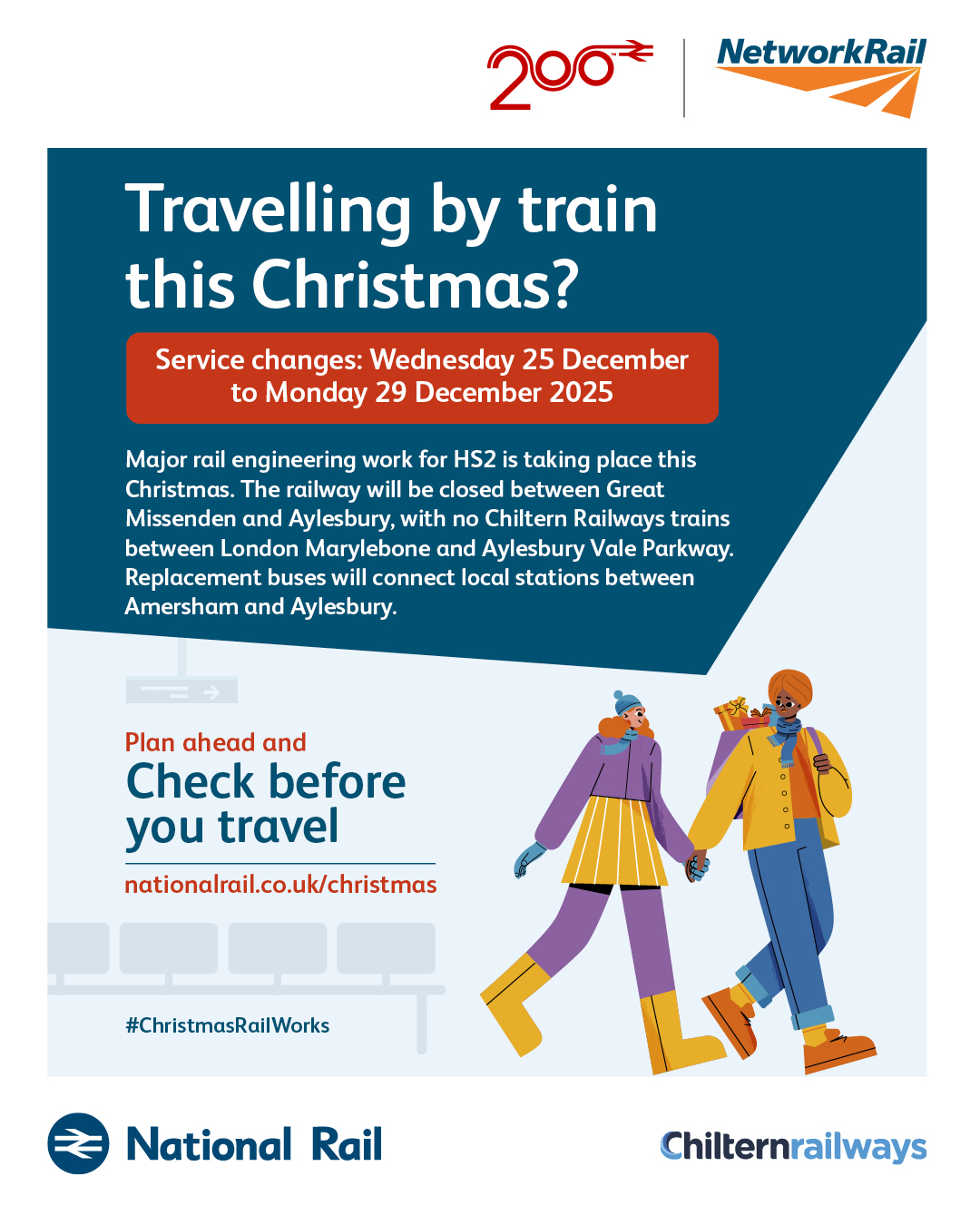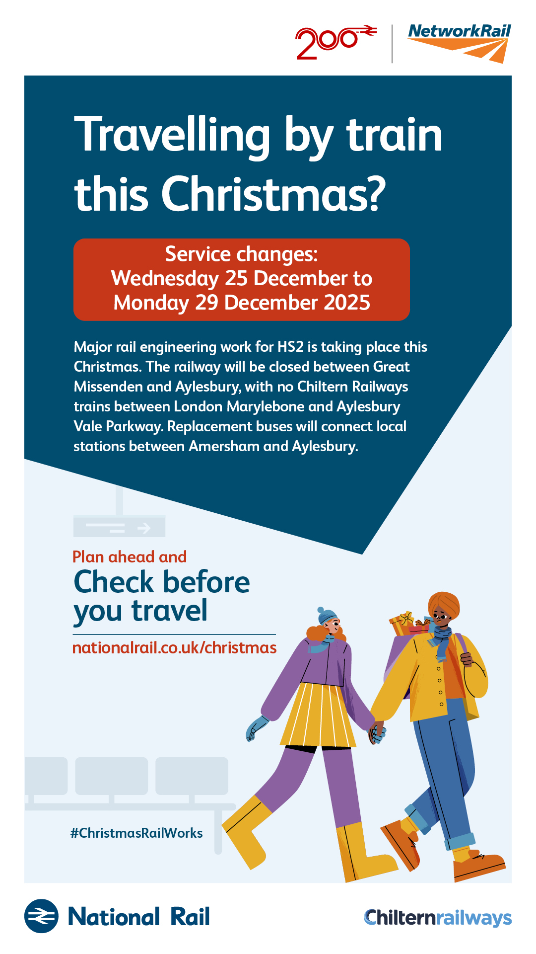 Our national CBYT marketing campaign raises awareness of planned rail engineering work during the Christmas and New Year bank holiday periods. We are encouraging all rail passengers – primarily leisure travellers – to plan ahead and check if their train journey is affected before they travel.