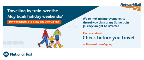 The aim of this campaign is to raise awareness of planned rail engineering work over the spring period bank holiday period. We are encouraging leisure and business passengers to plan ahead and check if their train journey is affected before they travel by visiting www.nationalrail.co.uk/spring.