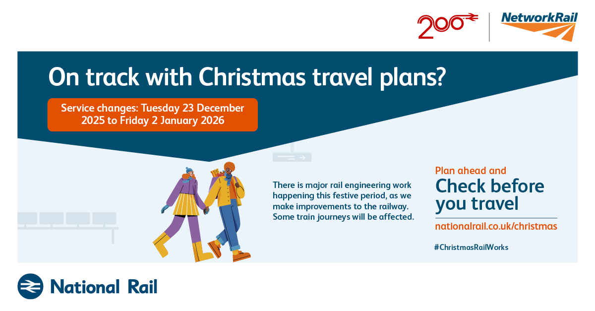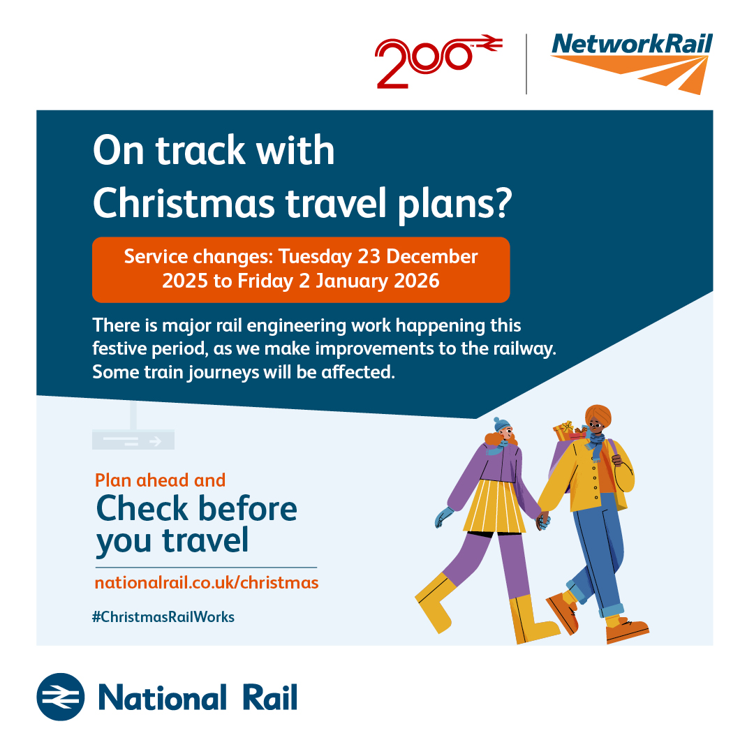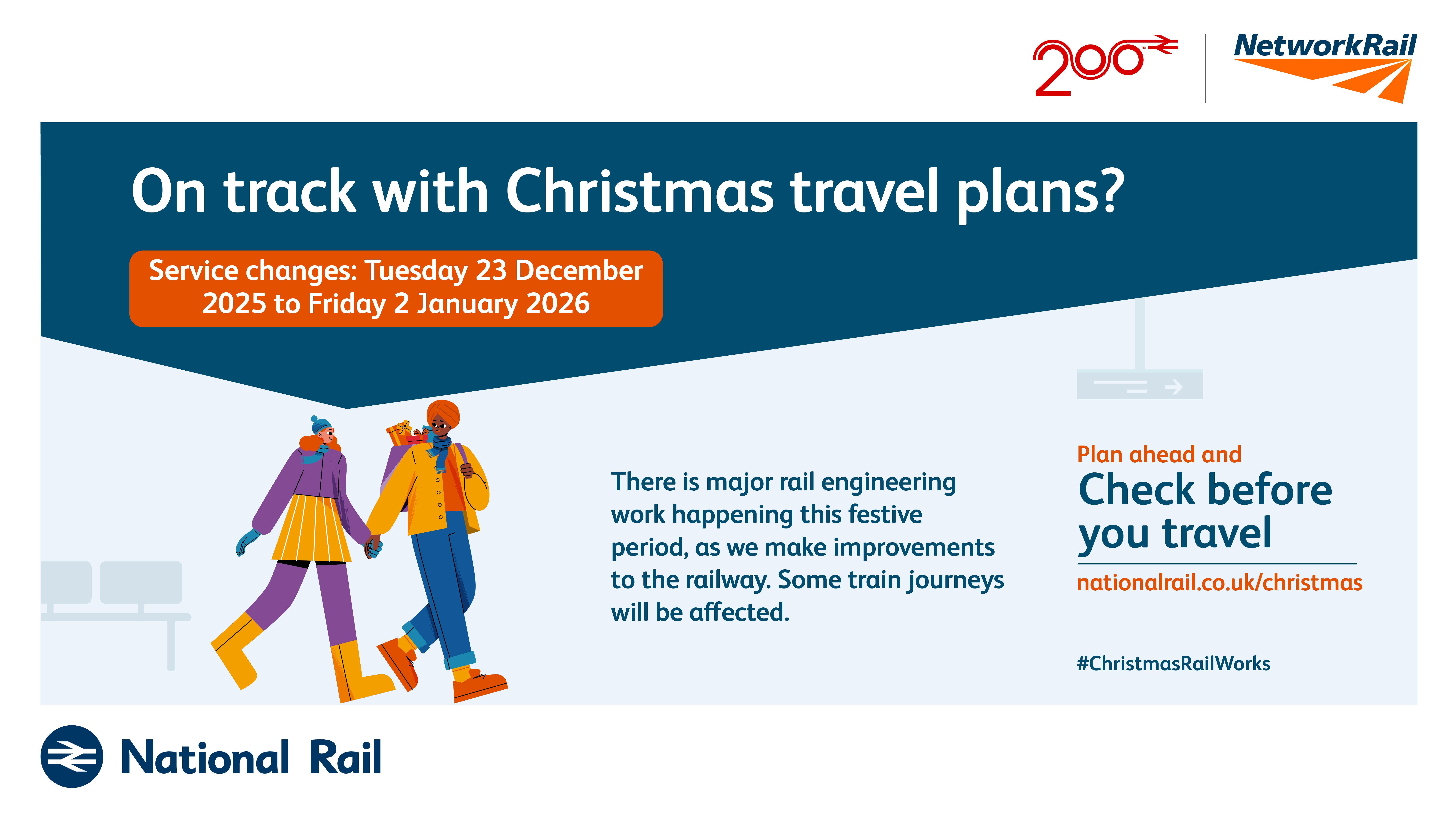 The aim of this campaign is to raise awareness of planned rail engineering work over the Christmas and New Year bank holiday period, encouraging leisure and business passengers to plan ahead and check if their train journey is affected before they travel.