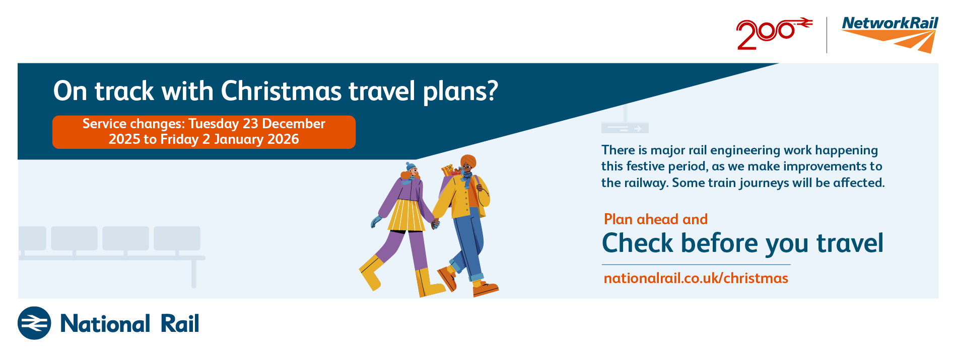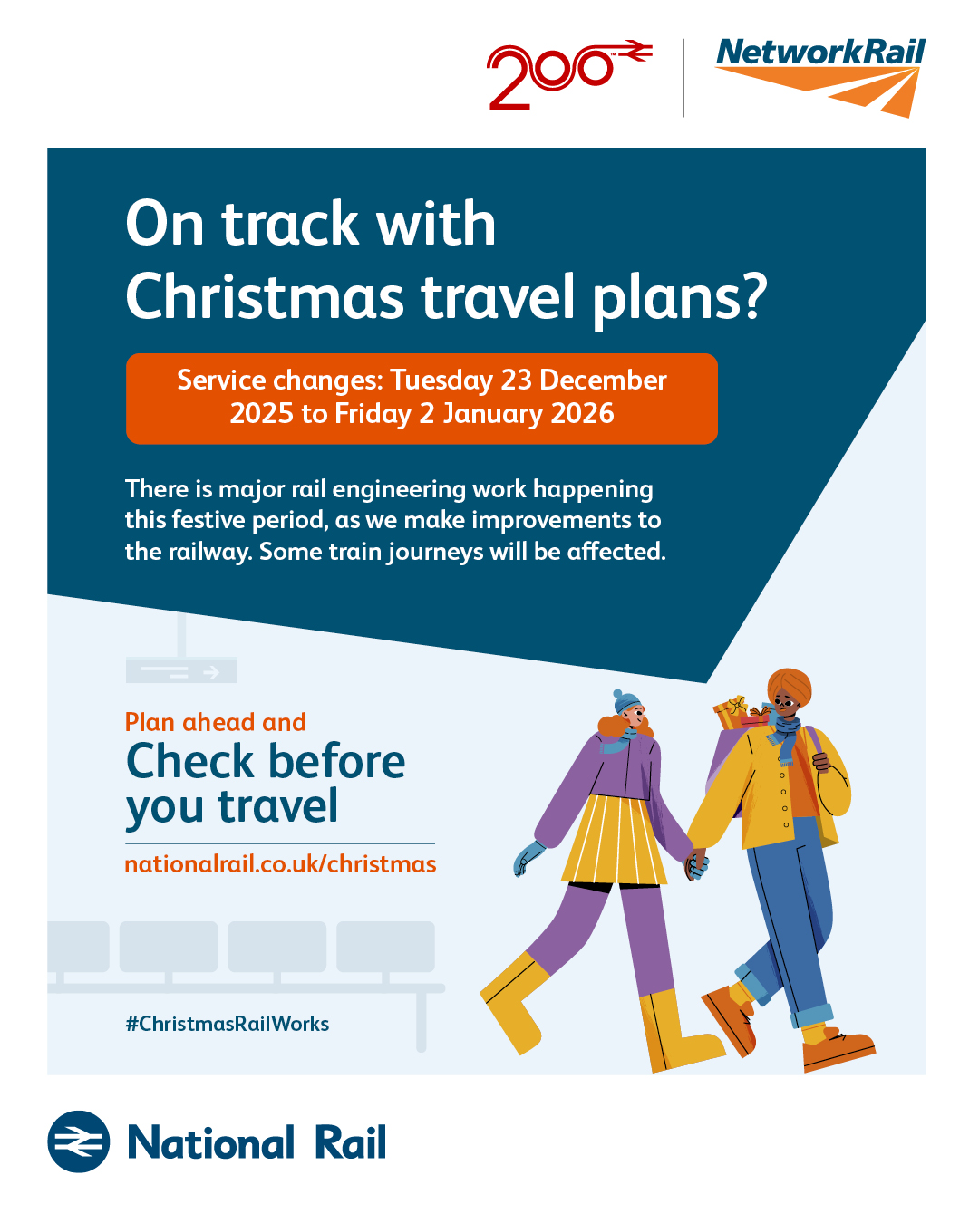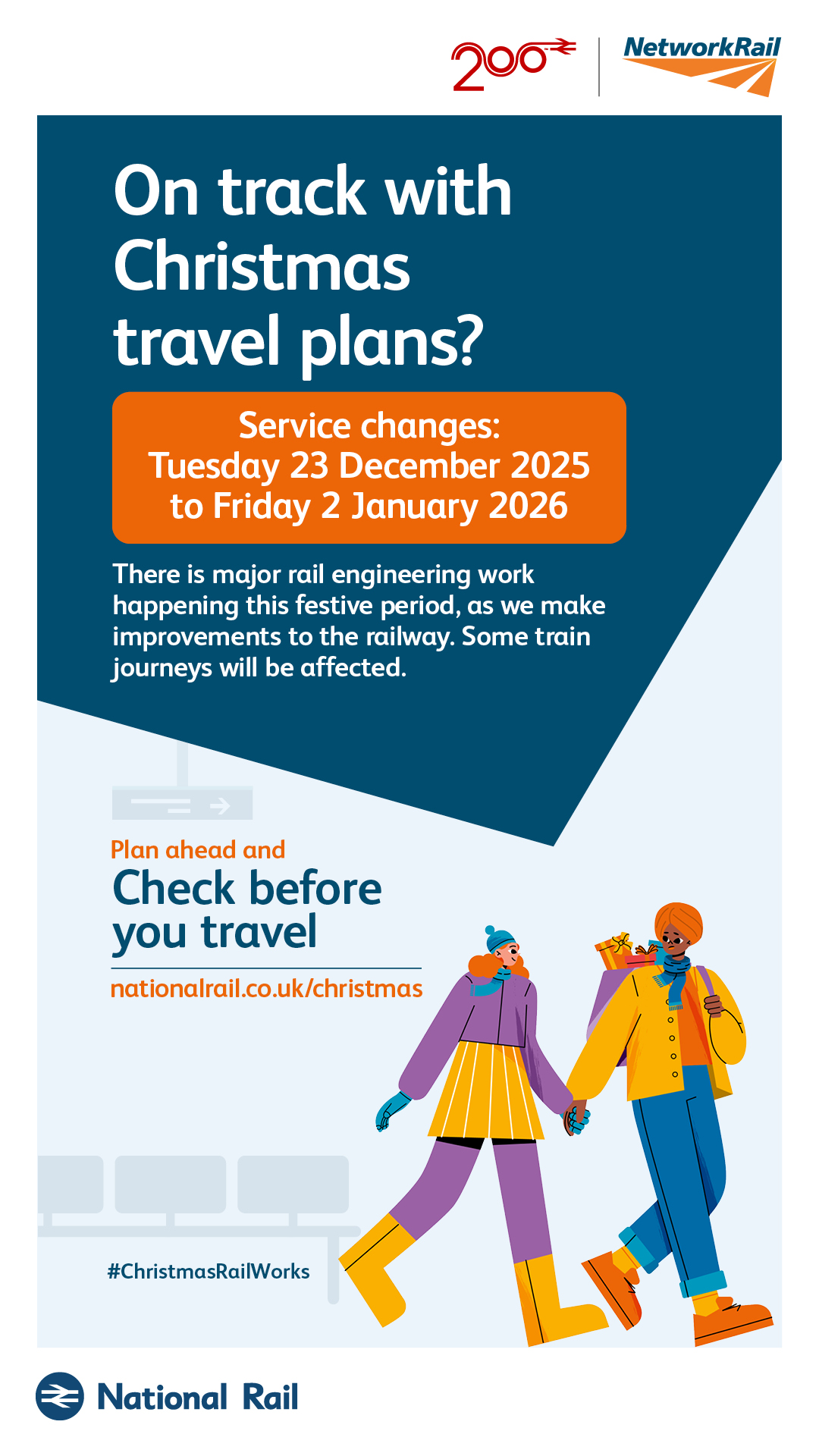 The aim of this campaign is to raise awareness of planned rail engineering work over the Christmas and New Year bank holiday period, encouraging leisure and business passengers to plan ahead and check if their train journey is affected before they travel.